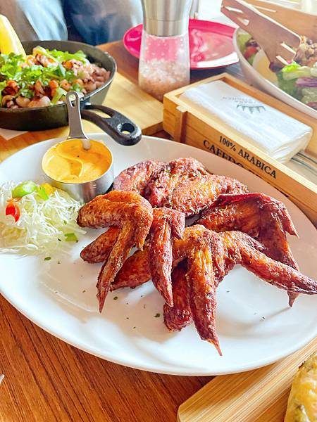 使用Cajun辛香料,讓現炸出來的雞翅卻帶有原木現烤的香氣。附上美式水牛城雞翅沾醬,一口接一口配著啤酒~